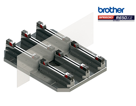 本体ベース設置でマシンのYストロークを最大限に活用できます。クランプユニット追加で、加工ワークの2個とりが可能です。