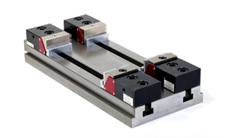 高精度サイドクランプです。マシンの加工領域を最大限に活用できます。独自のV溝クサビ口金で、ワークの浮き上がりをシャットアウト。